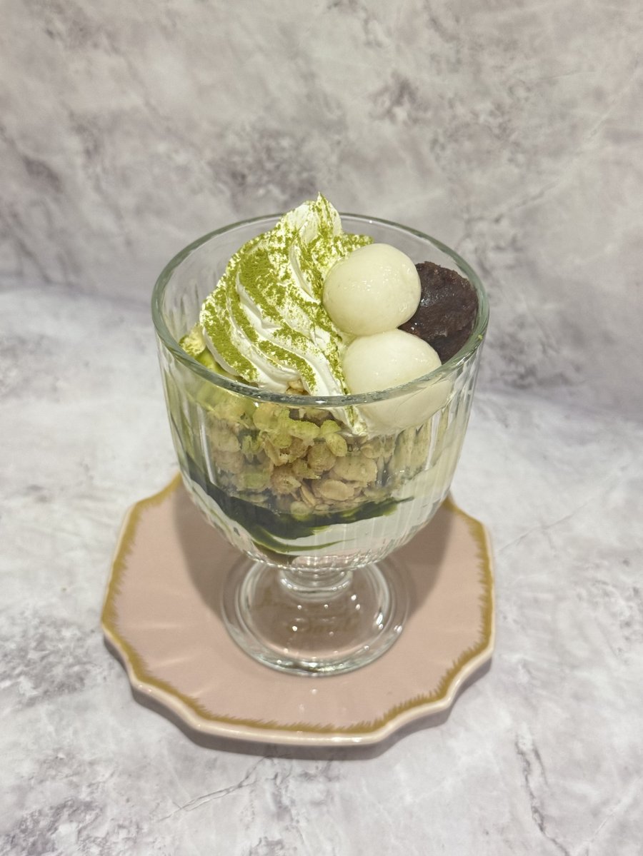 抹茶パフェ ¥650(税込) つぶあん・白玉・アイスクリームが入った抹茶好きにたまらないパフェ