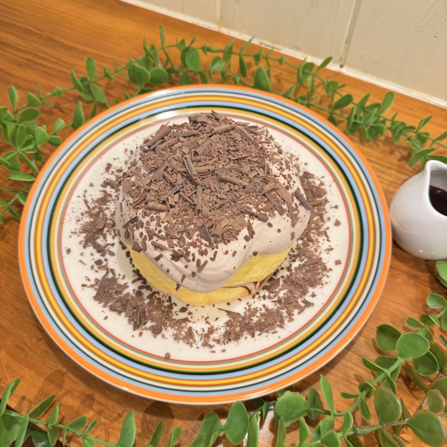 チョコレートパンケーキ ¥1180(税込) チョコレートソース添えで、チョコレート好きにはたまらないパンケーキです♪