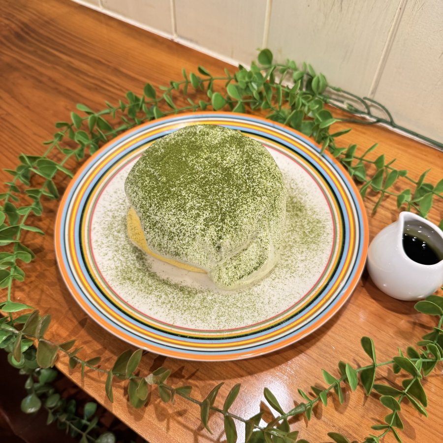 抹茶パンケーキ ¥1180(税込) 中にはあんこ入り、抹茶ソースをかけてどうぞ♪